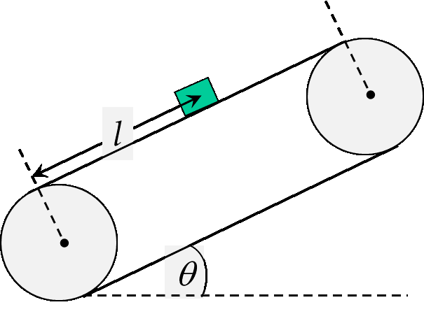 (1)当两转盘不动时,小木块从静止的传送带上匀速下滑。求木块与传送带之间的动摩擦因数 μ。