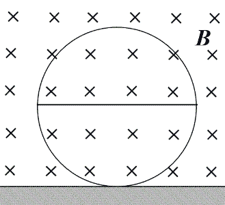 14.如图所示,一电阻分布均匀、直径为 d 的金属环竖直固定在水平地面上,地面上方存在匀强磁场,磁感应强度大小为 B,方向垂直于环面向里。初始时,一金属棒紧贴金属环且与其水平直径重合,由静止开始下落,下落过程中始终与环面密切接触,形成一闭合回路。金属棒还受到一个变力 F 作用,使其做自由落体运动。金属环和金属棒单位长度电阻均为 α。以下落开始为计时零点,试导出金属棒在落地前所受到的变力 F 的大小随时间 t 的变化关系。重力加速度大小为 g,忽略摩擦和空气阻力。