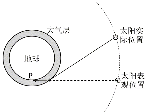 (1)试估算此时地心到太阳实际位置的连线与地心到太阳表观位置的连线之间的夹角。