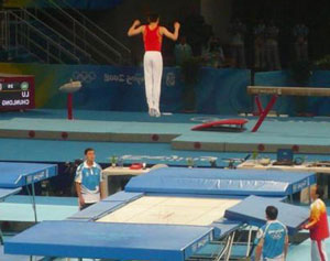 蹦床是一项运动员利用从蹦床反弹中表现杂技技巧的竞技运动,它属于体操运动的一种,蹦床有“空中芭蕾”之称。