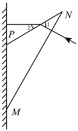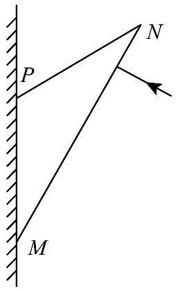 4.如图,一棱镜的横截面为等腰三角形 △PMN,其中边长 PM 与 PN 相等,∠PMN = 30°,PM 边紧贴墙壁放置,现有一束单色光垂直于 MN 边入射,从 PN 边出射后恰好与墙面垂直(不考虑光线在棱镜内的多次反射),则该棱镜的折射率为( )