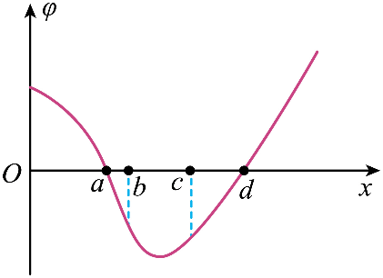 C.φ–x 图像斜率表示电场强度,由图可知,b 点与 c 点的电场强度方向相反,根据 F = qE 可知在 b 点与 c 点所受电场力方向相反,故C错误;