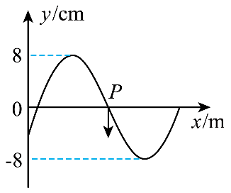 9.某简谐横波在 t = 0 时刻的波形图如图所示。x = 0 处质点的位移为 y = − 4 cm,x = 0.7 m 处的质点 P 位于平衡位置且振动方向向下。已知该波的周期为 1.2 s,则( )