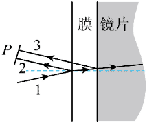 2.增透膜被广泛应用于各种光学透镜。如图,入射光 1 以接近法线方向入射镀膜镜片,反射光 2 和 3 在 P 处相干减弱,则 2 和 3 在 P 处的光振动图像可能为( )