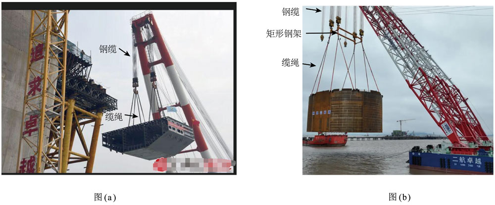 4.2024 年 9 月,国内起重能力最大的双臂架变幅式起重船“二航卓越”号交付使用。若起重船的钢缆和缆绳通过图示两种方式连接:图(a)中直接连接,钢缆不平行;图(b)中通过矩形钢架连接,钢缆始终平行。通过改变钢缆长度(缆绳长度不变),匀速吊起构件的过程中,每根缆绳承受的拉力( )