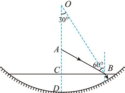 (2)因折射光经凹面镜反射后沿原路返回,可知折射光线垂直于凹面镜。如图所示,折射光线的反向延长线过凹面镜的圆心 O,如图所示,由几何关系得