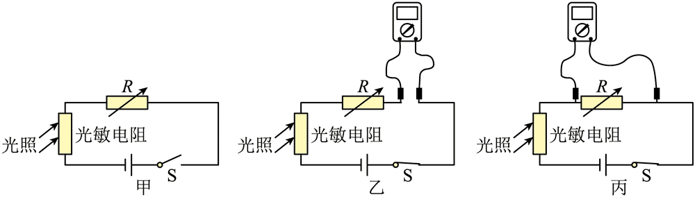 3.某学习小组在暗室中利用多用电表验证“硫化镉光敏电阻的阻值随光照强度增大而减小”的特性,实验电路如图甲所示。保持电阻箱 R 的阻值不变,则( )