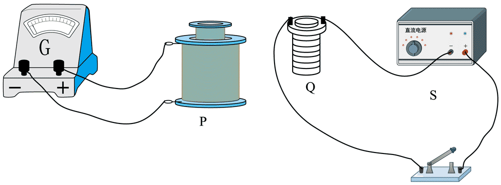 8.法拉第在日记中记录了其发现电磁感应现象的过程,某同学用现有器材重现了其中一个实验。如图所示,线圈 P 两端连接到灵敏电流计上,线圈 Q 通过开关 S 连接到直流电源上.将线圈 Q 放在线圈 P 的里面后,则( )