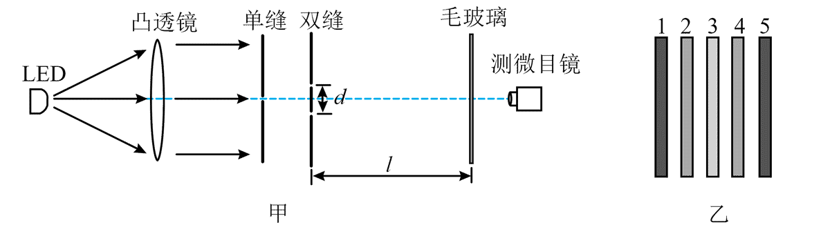 11.某同学通过双缝干涉实验测量发光二极管(LED)发出光的波长。图甲为实验装置示意图,双缝间距 d = 0.450 mm,双缝到毛玻璃的距离 l = 365.0 mm,实验中观察到的干涉条纹如图乙所示。