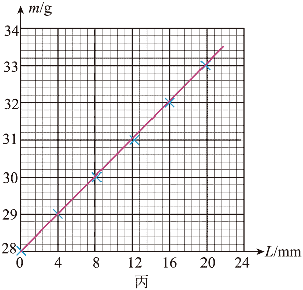 (3)根据上表,用“×”在图丙坐标纸中至少描出 5 个数据点,并绘制 m–L 图像;