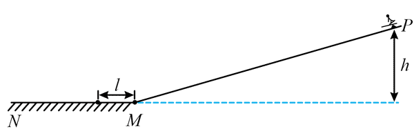 13.游乐项目“滑草”的模型如图所示,某质量 m = 80 kg 的游客(包括滑板,可视为质点)由静止从距水平滑道高 h = 20 m 的 P 点沿坡道 PM 滑下,滑到坡道底部 M 点后进入水平减速滑道 MN,在水平滑道上匀减速滑行了 l = 9.0 m 后停止,水平滑行时间 t = 3.0 s,取重力加速度大小 g = 10 m/s2,求: