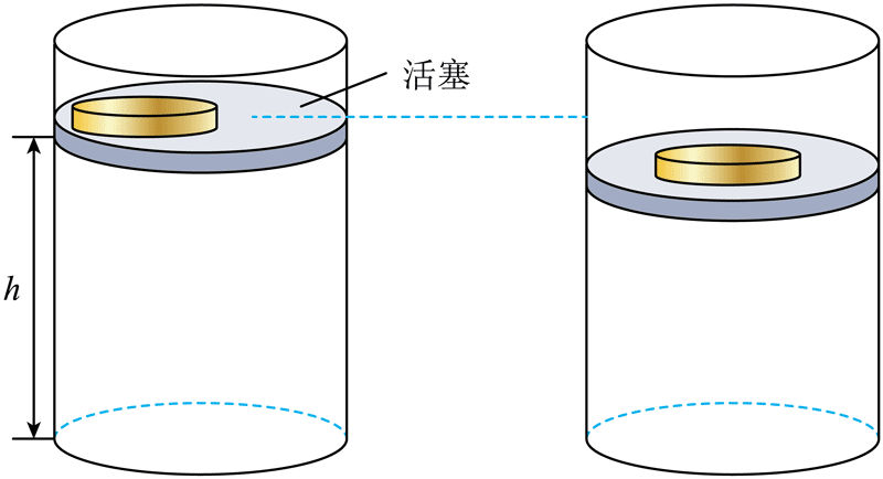 联立可得 Δh = \(\frac{{Mgh}}{{Mg + mg + {p_0}S}}\)