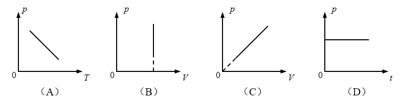 9.如图所示的四幅图中,p表示一定质量密闭气体的压强,V表示体积,T表示热力学温度,t表示摄氏温度,则下图中表示该气体等容变化规律的是( )