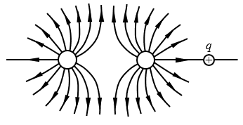 (2)请画出带正电的点电荷q在图中位置所受电场力的方向。