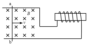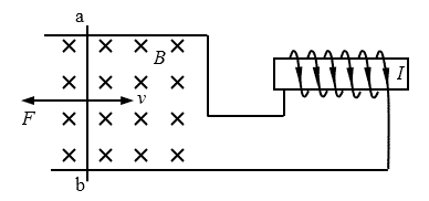 22.如图所示,金属棒ab在匀强磁场中沿金属导轨向右运动,请在图中画出螺线管中感应电流的方向和ab棒所受磁场力的方向。