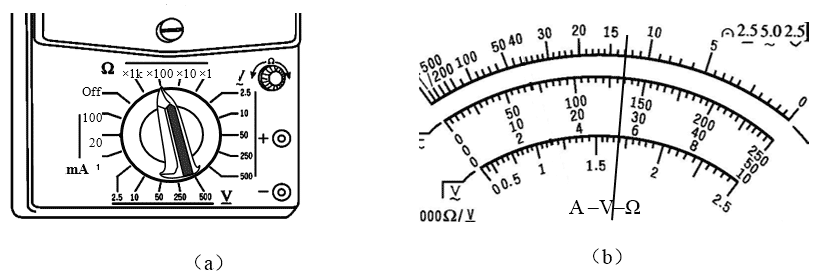 (1)在某次测量中,实验操作正确,选择开关的位置如图(a)所示,表头刻度和指针位置如图(b)所示,则被测电阻的阻值为___________Ω;