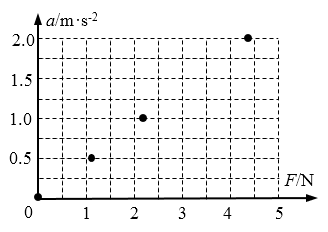 在“用DIS研究加速度与力的关系、加速度与质量的关系”实验中,保持小车质量不变,改变小车所受的作用力,测得了下表所示的5组数据,并已在坐标平面上画出部分数据点,如图所示: