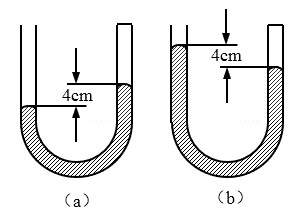 29.如图(a)所示,竖直放置的U型管内封闭有10cm长的空气柱,封闭端内水银液面比开口端液面高4cm。外界大气压强为76cmHg,在温度不变的情况下,向开口端内加入一些水银后,开口端液面比封闭端液面高4cm,如图(b)所示。求: