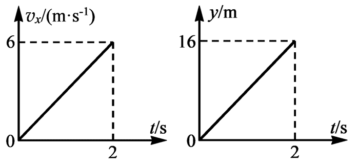 3.台风往往伴随大雨。建立沿水平方向为 x 轴、竖直向下为 y 轴的坐标系,一雨滴分别在两个坐标轴方向的运动图像如图所示。0 ~ 2 s 的时间内,雨滴做_________________运动;t = 2 s 时,雨滴的速度大小为_______m/s。