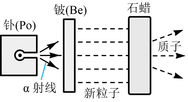 2.20 世纪 30 年代,德国科学家用 α 粒子轰击铍时产生一种不带电的射线,他们认为是 γ 射线。1932 年约里奥-居里夫妇用这种未知射线轰击含氢的石蜡,能打出质子,推算出这种未知射线的能量约为 5.3 MeV,与 α 粒子初始能量吻合,也认为这种未知射线是 γ 射线。