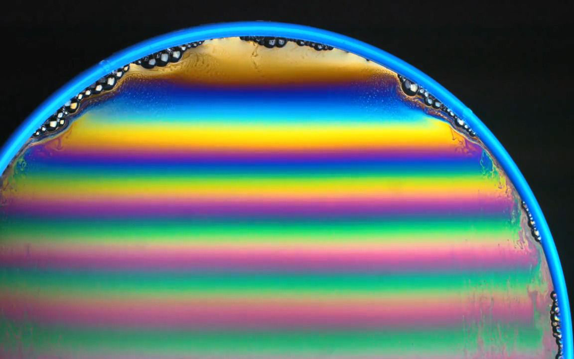 空中漂浮的肥皂泡几乎呈球形,水平桌面上的肥皂泡可能呈半球形。