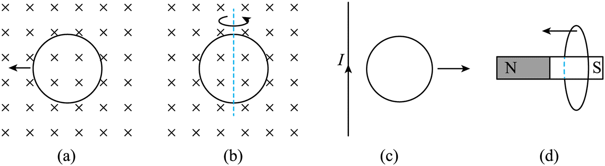 C.图(c)中,圆环在通有恒定电流的长直导线旁向右平移