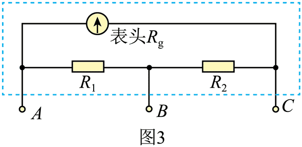 (3)某电流表出现故障,其内部电路如图 3 所示。用多用电表的欧姆挡检测故障,两表笔接 A、B 时表头 Rg 指针不偏转,接 A、C 和 B、C 时表头 Rg 指针都偏转。出现故障的原因是________(填选项前的字母)。
