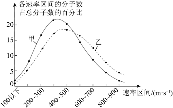 8.一定质量的理想气体,体积保持不变。在甲、乙两个状态下,该气体分子速率分布图像如图所示。与状态甲相比,该气体在状态乙时( )