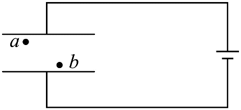 9.如图所示,平行金属板与电源连接。一点电荷由 a 点移动到 b 点的过程中,电场力做功为 W。现将上、下两板分别向上、向下移动,使两板间距离增大为原来的 2 倍,再将该电荷由 a 移动到 b 的过程中,电场力做功为( )