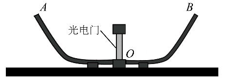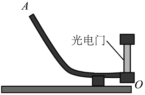 11.小明同学探究机械能守恒定律,实验装置如图。实验时,将小钢球在斜槽上某位置A由静止释放,钢球沿斜槽通过末端 O 处的光电门,光电门记录下钢球的遮光时间 t。用游标卡尺测出钢球的直径 d,由 v = \(\frac{d}{t}\) 得出其通过光电门的速度 v,再计算出动能增加量 ΔEk = \(\frac{1}{2}\)mv2。用刻度尺测得钢球下降的高度 h,计算出重力势能减少量 ΔEp。