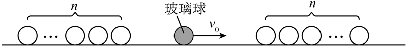 14.如图所示,在光滑水平面上,左右两列相同的小钢球沿同一直线放置。每列有 n 个。在两列钢球之间,一质量为 m 的玻璃球以初速度 v0 向右运动,与钢球发生正碰。所有球之间的碰撞均视为弹性碰撞。