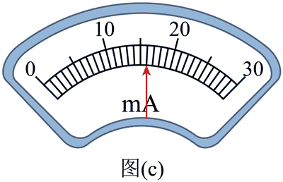(2)将鳄鱼夹 a、b 短接,滑动变阻器 R6 的滑片移至最右端刻度处,S1 打在位置 1。接通 S2,调节滑动变阻器 R5,电流表指针指在图(c)所示的位置,记录电流表示数 I =________mA,此示数作为本次实验的电流定标值;