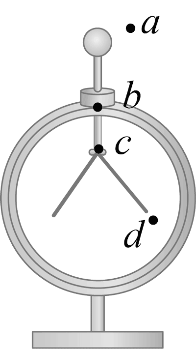 4.用带电玻璃棒接触验电器的金属球,移走玻璃棒,验电器内的两片金属箔张开,稳定后如图。图中 a、b、c、d 四点电场强度最强的是( )
