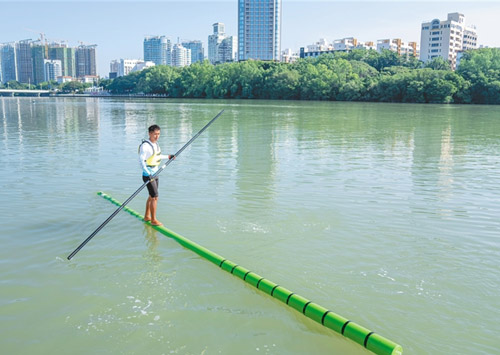 C.手持划杆可使选手(含划杆)的重心下移,更易保持平衡