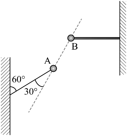5.如图,两带电小球的质量均为 m,小球 A 用一端固定在墙上的绝缘轻绳连接,小球 B 用固定的绝缘轻杆连接。A 球静止时,轻绳与竖直方向的夹角为 60°,两球连线与轻绳的夹角为 30°,整个系统在同一竖直平面内,重力加速度大小为 g。下列说法正确的是( )