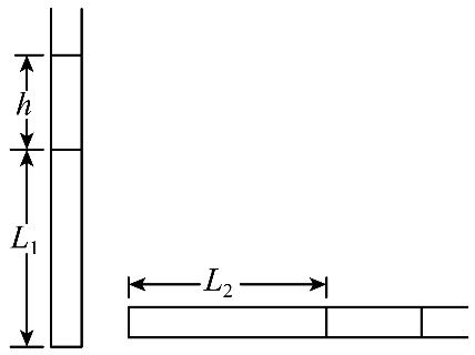 13.用热力学方法可测量重力加速度。如图所示,粗细均匀的细管开口向上竖直放置,管内用液柱封闭了一段长度为 L1 的空气柱。液柱长为 h,密度为 ρ。缓慢旋转细管至水平,封闭空气柱长度为 L2,大气压强为 p0。
