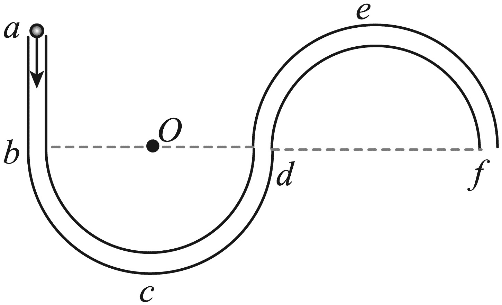 3.如图所示,由长为 R 的直管 ab 和半径为 R 的半圆形弯管 bcd、def 组成的绝缘光滑管道固定于水平面内,管道间平滑连接。bcd 圆心 O 点处固定一电荷量为 Q(Q > 0)的带电小球。另一个电荷量 为q(q > 0 且 q ≪ Q)的带电小球以一定初速度从 a 点进入管道,沿管道运动后从 f 点离开。忽略空气阻力。则( )
