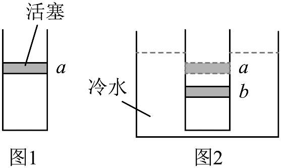 4.如图 1 所示,用活塞将一定质量的理想气体密封在导热气缸内,活塞稳定在 a 处。将气缸置于恒温冷水中,如图 2 所示,活塞自发从 a 处缓慢下降并停在 b 处,然后保持气缸不动,用外力将活塞缓慢提升回 a 处。不计活塞与气缸壁之间的摩擦。则( )