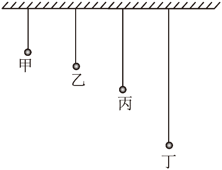 5.如图所示,甲、乙、丙、丁四个小球用不可伸长的轻绳悬挂在天花板上,从左至右摆长依次增加,小球静止在纸面所示竖直平面内。将四个小球垂直纸面向外拉起一小角度,由静止同时释放。释放后小球都做简谐运动。当小球甲完成 2 个周期的振动时,小球丙恰好到达与小球甲同侧最高点,同时小球乙、丁恰好到达另一侧最高点。则( )