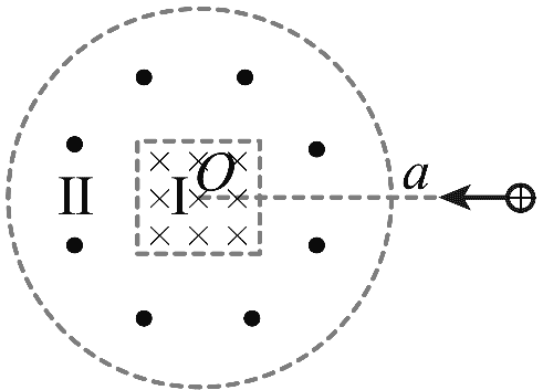 10.如图所示,Ⅰ 区有垂直于纸面向里的匀强磁场,其边界为正方形;Ⅱ 区有垂直于纸面向外的匀强磁场,其外边界为圆形,内边界与 I 区边界重合;正方形与圆形中心同为 O 点。I 区和 Ⅱ 区的磁感应强度大小比值为 4∶1。一带正电的粒子从 Ⅱ 区外边界上 a 点沿正方形某一条边的中垂线方向进入磁场,一段时间后从 a 点离开。取 sin37° = 0.6。则带电粒子( )