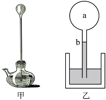 9.图甲为 1593 年伽利略发明的人类历史上第一支温度计,其原理如图乙所示。硬质玻璃泡 a 内封有一定质量的气体(视为理想气体),与 a 相连的 b 管插在水槽中固定,b 管中液面高度会随环境温度变化而变化。设 b 管的体积与 a 泡的体积相比可忽略不计,在标准大气压 p0 下,b 管上的刻度可以直接读出环境温度。则在 p0 下( )