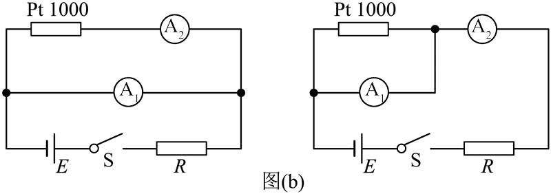 (2)兴趣小组设计了如图(b)所示的甲、乙两种测量铂电阻阻值的电路图,能准确测出铂电阻阻值的是________(填“甲”或“乙”),保护电阻 R 应选________(填“R1”或“R2”);