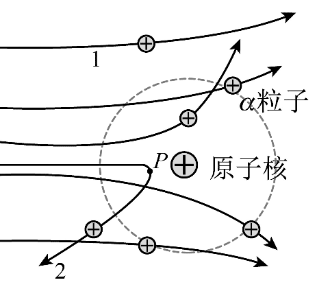 B.沿轨迹 2 运动的 α 粒子到达 P 时动能为零、电势能最大