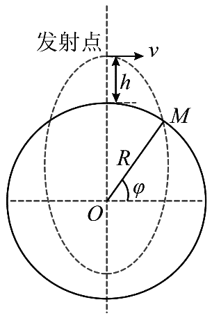 13.月球有类似于地球的南北两极和纬度。如图所示,月球半径为 R,表面重力加速度为 g月,不考虑月球自转。从月球北极正上方水平发射一物体,要求落在纬度 φ = 60° 的 M 处,其运动轨迹为椭圆的一部分。假设月球质量集中在球心 O 点,如果物体沿椭圆运动的周期最短,则( )