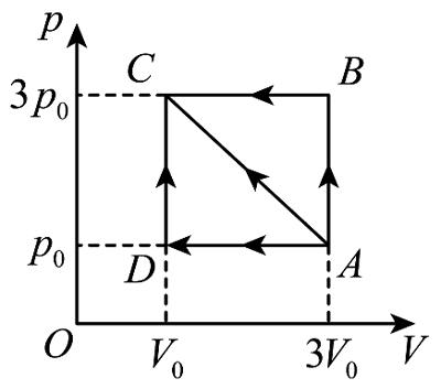 B.同理可知 ABC 过程外界对气体做功比 ADC 过程大,根据热力学第一定律 ΔU = W + Q 可知 ABC 过程气体放出的热量多,故 B 错误;