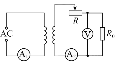 如图所示,理想变压器的原线圈接在电压有效值不变的正弦交流电源上,副线圈接有滑动变阻器和定值电阻,各电表均为理想交流电表。当滑动变阻器的滑动片向右滑动时,则( )