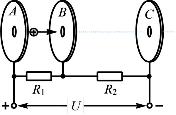 2.B2+ 离子在加速管中加速。加速管可简化为若干大小、形状相同,中间开孔的正对金属圆板组成。取其中 A、B、C 三块金属圆板进行研究,已知 B、C 间距是 A、B 间距的两倍,A、B 两板构成电容器的电容 CAB = 0.4 μF,则 B、C 两板构成电容器的电容 CBC = ________μF。