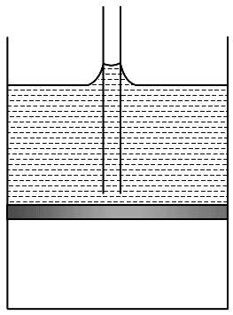 如图所示,导热良好的瓶内,用一质量为 m1、横截面积为 S 的活塞封闭一定质量的理想气体,活塞能无摩擦滑动,在活塞上方有质量为 m2 的液体。初始时,瓶内气体处于状态 A,体积为 VA。将一根质量不计的细管插入液体,液体在细管中上升到一定高度后保持静止,随后通过细管缓慢吸走全部液体,此时瓶内气体处于状态 B。环境温度保持不变,从状态 A 到状态 B 过程中,气体吸收热量 Q = 2.05 J。已知 m1 = 0.4 kg,m2 = 2 kg,S = 40 cm2,VA = 400 cm3,大气压强 p0 = 0.99×105 Pa,g = 10 m/s2。