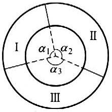 3.如图所示,在一内径均匀的绝热的环形管内,有三个薄金属片制成的活塞将管隔成三部分,活塞的导热性和封闭性良好,且可无摩擦地在圆环内运动。三部分中盛有同一种理想气体。容器平放在水平桌面上,起始时,Ⅰ、Ⅱ、Ⅲ三部分气体的压强都是p0,温度分别是t1=-3℃,t2=47℃,t3=27℃,。三个活塞到圆环中心连线之间的夹角分别是α1=90°,α2=120°,α3=150°。