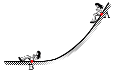 一个女孩从斜坡上的A点滑下,途中经过水平面上的B点。在图上画出: